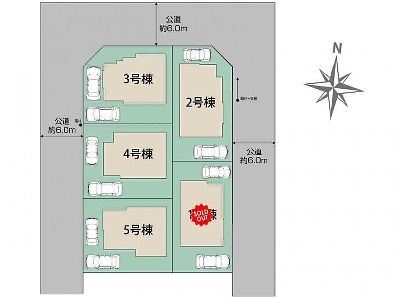 | 駐車場 | 2台 | 道路の幅員 | 東6.0m公道、北6.0m公道、西6.0m公道 |