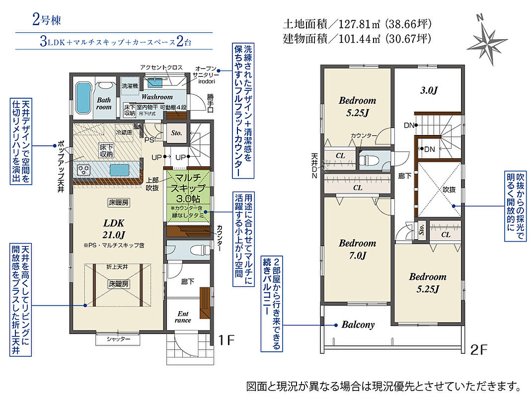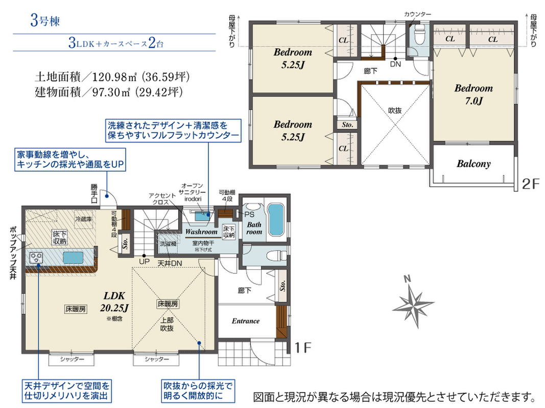 | 建物面積 | 97.30m2~101.44m2 | 土地面積 | 120.98m2~127.81m2 |