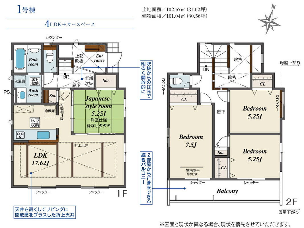| 建物面積 | 101.04m2 | 土地面積 | 102.57m2 |