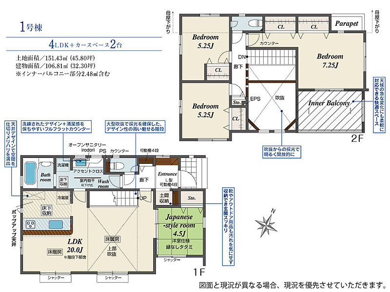 | 建物面積 | 106.81m2 | 土地面積 | 151.43m2 |