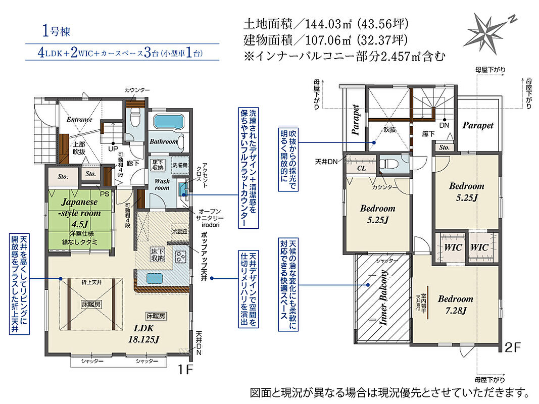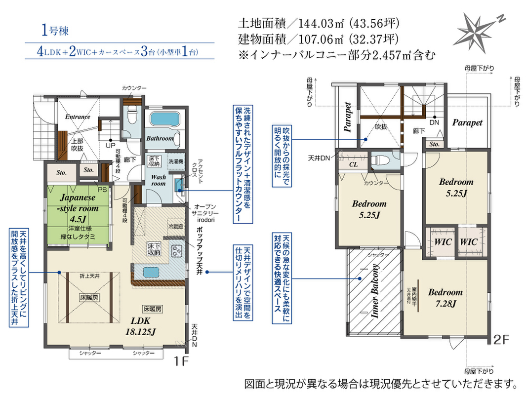 | 建物面積 | 107.06m2 | 土地面積 | 144.03m2 |
