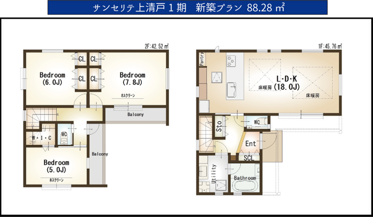 | 建物面積 | 88.28m2 | 土地面積 | 93.97m2 |