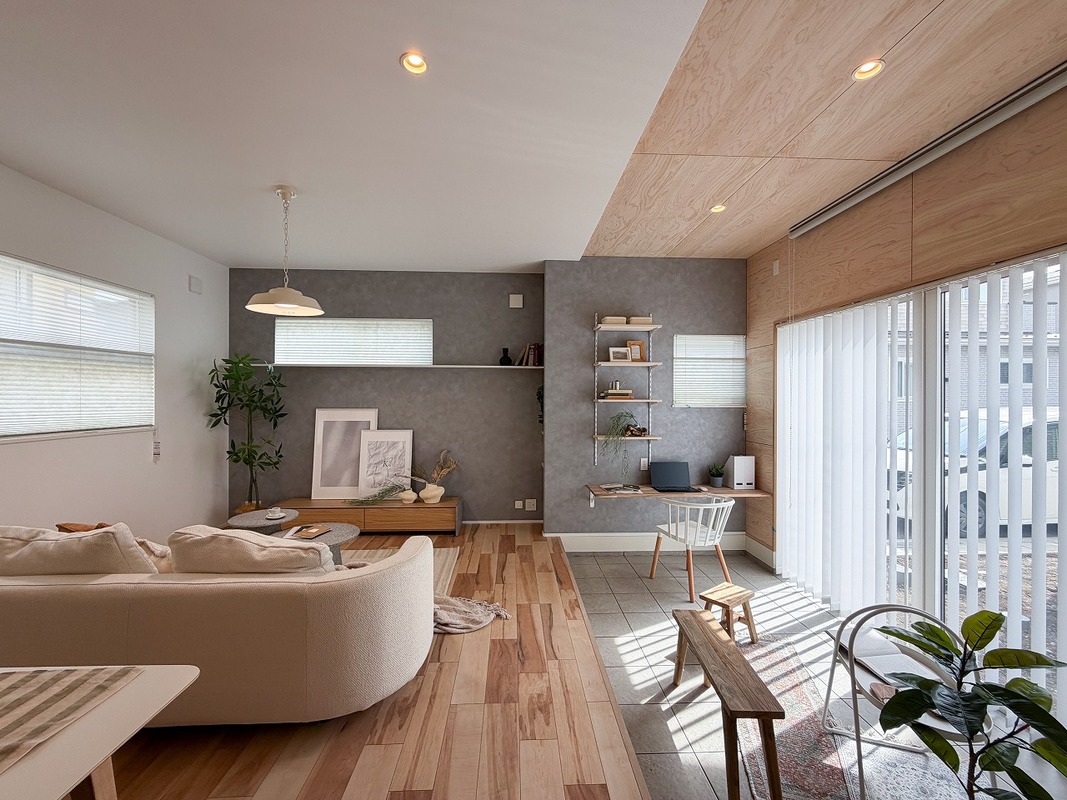 銘木フローリングと合わせて木の香りとやさしい木目が家族をつつみ、