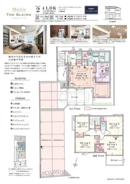 | 建物面積 | 90.67m2~92.74m2 | 土地面積 | 114.29m2~128.52m2 / 私道負担なし |