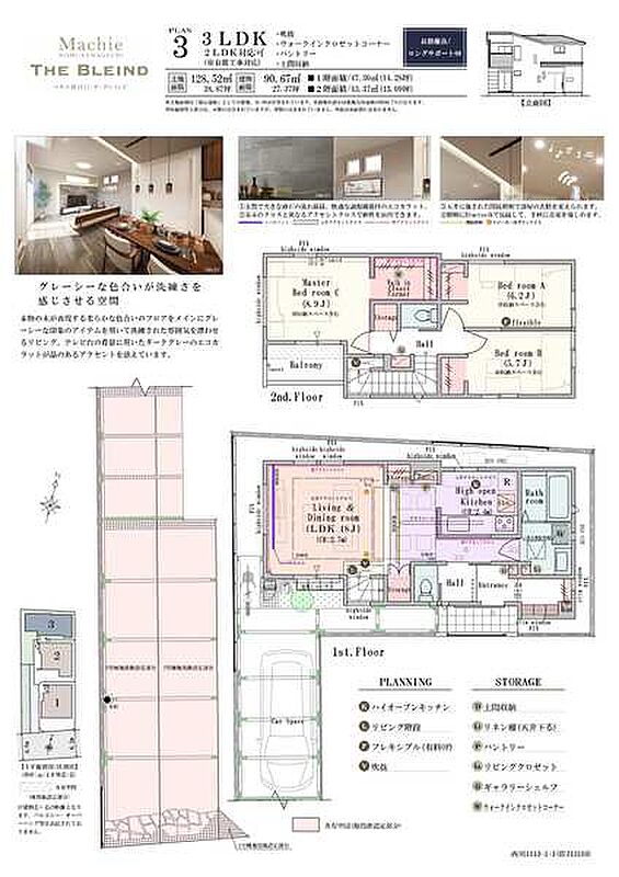 | 建物面積 | 90.67m2 | 土地面積 | 128.52m2 / 私道負担なし |