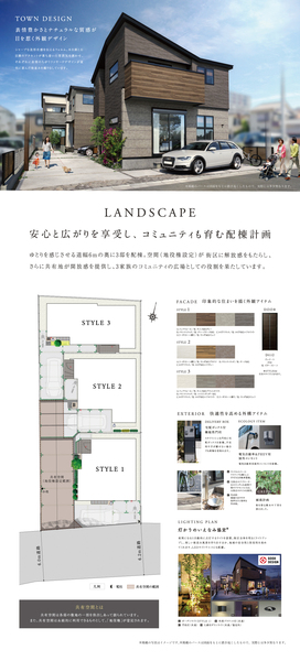 ※3号棟は抽選販売となります。(要望書受付締切:2026年3月13日(金)10時30分、抽選:同日11時~) ※2.3号棟は建物及び建物敷地周辺に関して、セメント系固化材を混ぜて表層転圧をしています。 ※上記金額には消費税(10%相当額)、水道分担金が含まれております。 ※消費税率改正による増税時は、相当額の負担が発生致します。 ※テレビ視聴に関してはアンテナ等、TV視聴にかかる費用はお客様負担となります。 ※地域によってはTVの映りが悪くなり、ブースターが必要となる場合があります。 その場合、費用はお客様負担となりますので予めご了承ください。 ※建物の一部が下がり壁、勾配天井、下がり天井になる場合があります。 また、階段の上にある収納で一部床が上がることがあります。詳細は設計図書でご確認下さい。 ※床面積算入部分は、m2数には含まれていますが、坪数には含まれていません。 ※灯かりのいえなみ協定(R)がございます。別紙ご確認ください。 ※建物・外構等に関する確認書がございます。別紙ご確認ください。 ※物件パンフレット及び間取り集は販売用の資料になりますので、最終的な図面は設計図書でご確認下さい。 ※「フラット35S」の金利Aプランに標準対応しています。 ※本物件がGVS3システム(通気金具工法+第3種換気(機械排気・自然給気)システム)を採用しています。 ※地役権設定に関する覚書がございます。別紙ご確認ください。 ・2号棟敷地面積114.29m2には地役権設定部分面積25.85m2を含みます。 ・3号棟敷地面積128.52m2には地役権設定部分面積31.06m2を含みます。 ※3号棟:土地面積128.52m2のうち路地状部分36.7%含みます。 [設備]公営水道/東京電力・他/都市ガス/本下水/カースペース/植栽その他付帯設備一式 |
