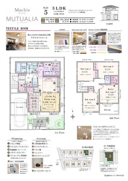 | 建物面積 | 104.26m2 | 土地面積 | 105.99m2 / 私道負担あり 241.02m2(持分11分の1) |