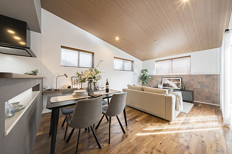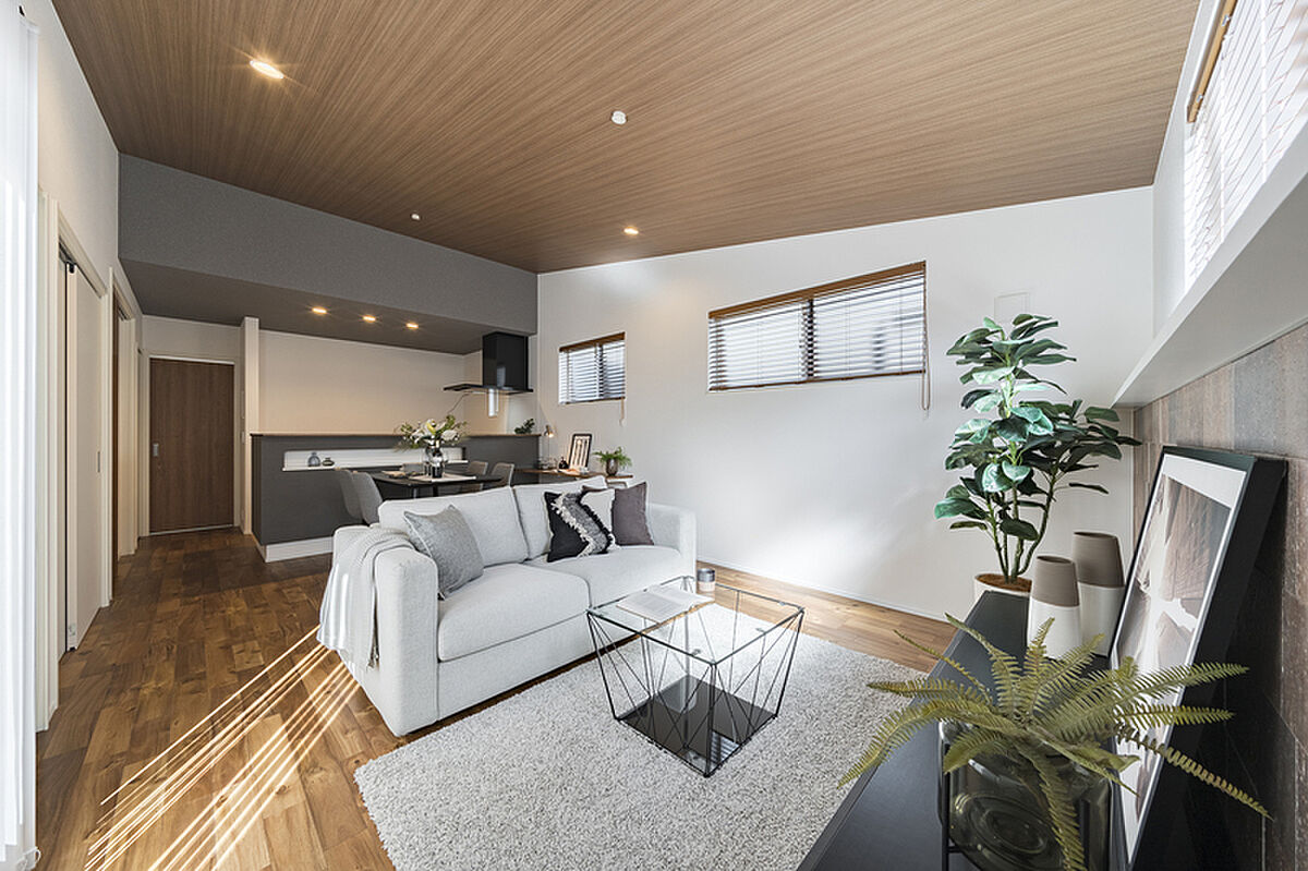 ◆家族が集まるリビングは天井を高く取り、広さと開放感を感じられる空間にしております。