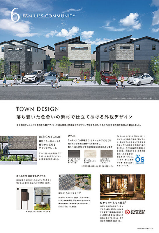※上記の土地面積は仮換地の敷地です。実測面積とは異なる場合があります。契約は仮換地の地積で行います。 仮換地の地積は、本換地時の確定測量の結果増減することがあります。 ※全棟地盤改良を行います。 ※上記金額には消費税(10%相当額)、水道分担金が含まれます。 ※消費税率改正による増税時は、相当額の負担が発生致します。 ※テレビ視聴、電話・インターネット接続等に関しての費用はお客様の負担となります。 ※地域によってはTVの映りが悪くなり、ブースターが必要となる場合があります。 その場合、費用はお客様負担となりますので予めご了承ください。 ※建物の一部が下がり壁、勾配天井、下がり天井になる場合があります。 また。階段の上にある収納で一部床が上がることがあります。詳細は設計図書でご確認下さい。 ※床面積算入部分は、m2数には含まれていますが、坪数には含まれていません。 ※灯かりのいえなみ協定(R)がございます。別紙ご確認ください。 ※建物・外構等に関する確認書がございます。別紙ご確認ください。 ※物件パンフレット及び間取り集は販売用の資料になりますので、最終的な図面は設計図書でご確認下さい・ ※「フラット35S」の金利Aプランに標準対応しています。 ※本物件はGVS3システム(通気金具工法+第3種換気(機械排気・自然給気)システム)を採用しています。 ※ゴミ集積所は共有部分・共同管理となります。詳細は別途資料をご参照ください。 [設備]公営水道/東京電力・他/個別プロパンガス/本下水/カースペース/植栽その他付帯設備一式 |
