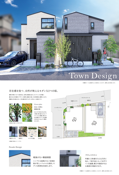 ※全棟建物敷地及び建物敷地周辺に関して、セメント系固化材を混ぜて表層転圧をしています。 ※上記金額には消費税(10%相当額)、水道分担金が含まれております。 ※消費税率改正による増税時は、相当額の負担が発生致します。 ※テレビ視聴に関してはアンテナ等、TV視聴にかかる費用はお客様負担となります。 ※地域によってはTVの映りが悪くなり、ブースターが必要となる場合があります。 その場合、費用はお客様負担となりますので予めご了承ください。 ※建物の一部が下がり壁、勾配天井、下がり天井になる場合があります。 また、階段の上にある収納で一部床が上がることがあります。詳細は設計図書でご確認下さい。 ※床面積算入部分は、m2数には含まれていますが、坪数には含まれていません。 ※灯かりのいえなみ協定(R)がございます。別紙ご確認ください。 ※物件・外構等に関する確認書がございます。別紙ご確認ください ※物件パンフレット及び間取り集は販売用の資料になりますので、最終的な図面は設計図書でご確認ください。 ※「フラット35S」の金利Aプランに標準対応しています。 ※本物件はGVS3システム(通気金具工法+第3種換気(機械排気・自然給気)システムを採用しています。 ※「住宅省エネルギー性能証明書」の発行には11,000円(税込み)の費用がかかります。 詳しくは、「住宅ローン控除及び贈与税非課税枠に関する確認書(1)」をご確認ください。 [設備]公営水道/東京電力・他/都市ガス/本下水/カースペース/植栽その他付帯設備一式 |