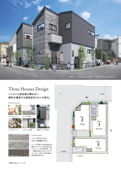 | 建物面積 | 90.89m2~97.18m2 | 土地面積 | 87.33m2 / 私道負担なし |