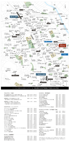 JR武蔵野線「東川口」駅 徒歩22分 埼玉高速鉄道「戸塚安行」駅 徒歩16分 JR武蔵野線「東川口」駅 バス9分 川口東高校入口バス停 徒歩6分 |