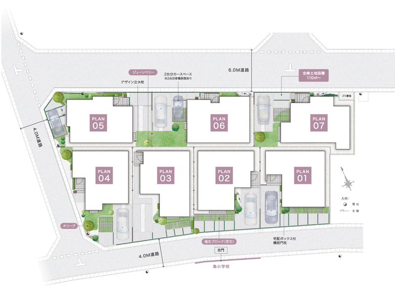 ※7号棟は抽選販売となります。(要望書受付締切:2026年8月6日(金)17時00分 、抽選:同日17時30分~) ※引渡予定 1~6号棟:2026年8月31日、7号棟:2026年9月11日 ※3号棟は約4.07m2、4号棟は約7.22m2が高圧線下となります。 ※駅・各施設までの徒歩所要時間(距離)は、「最も遠い号棟を起点」に計測しております。 [設備]公営水道/東京電力・他/都市ガス/本下水/カースペース/外構/植栽その他付帯設備一式 |
