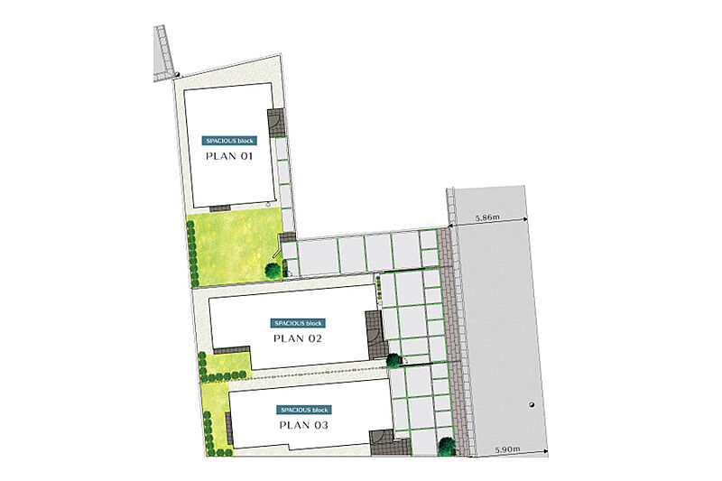 | 駐車場 | 2台 | 道路の幅員 | 北東側公道5.86m~5.90m |