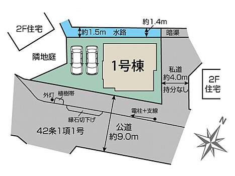 | 駐車場 | 2台 | 道路の幅員 | 南9.0m公道 |