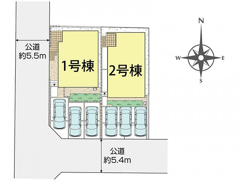 | 駐車場 | 3台 | 道路の幅員 | 南5.4m公道、西5.5m公道 |