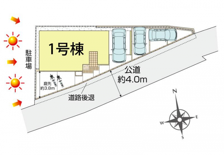 | 駐車場 | 3台 | 道路の幅員 | 南約4.0m公道 |