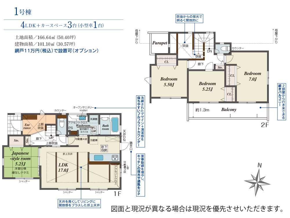 | 建物面積 | 101.10m2(約30.58坪) | 土地面積 | 166.64m2(約50.40坪) |
