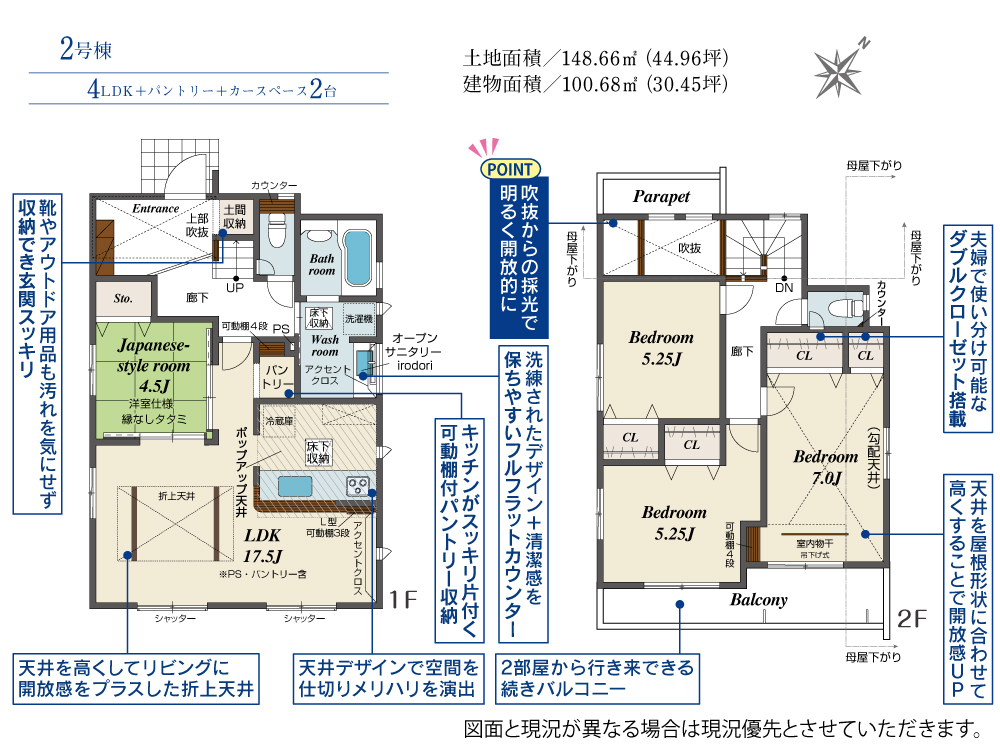 | 建物面積 | 100.68m2(約30.45坪) | 土地面積 | 148.66m2(約44.96坪) |