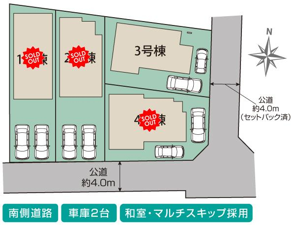 | 駐車場 | 2台 | 道路の幅員 | 南4.0m公道、東4.0m公道(セットバック済み) |