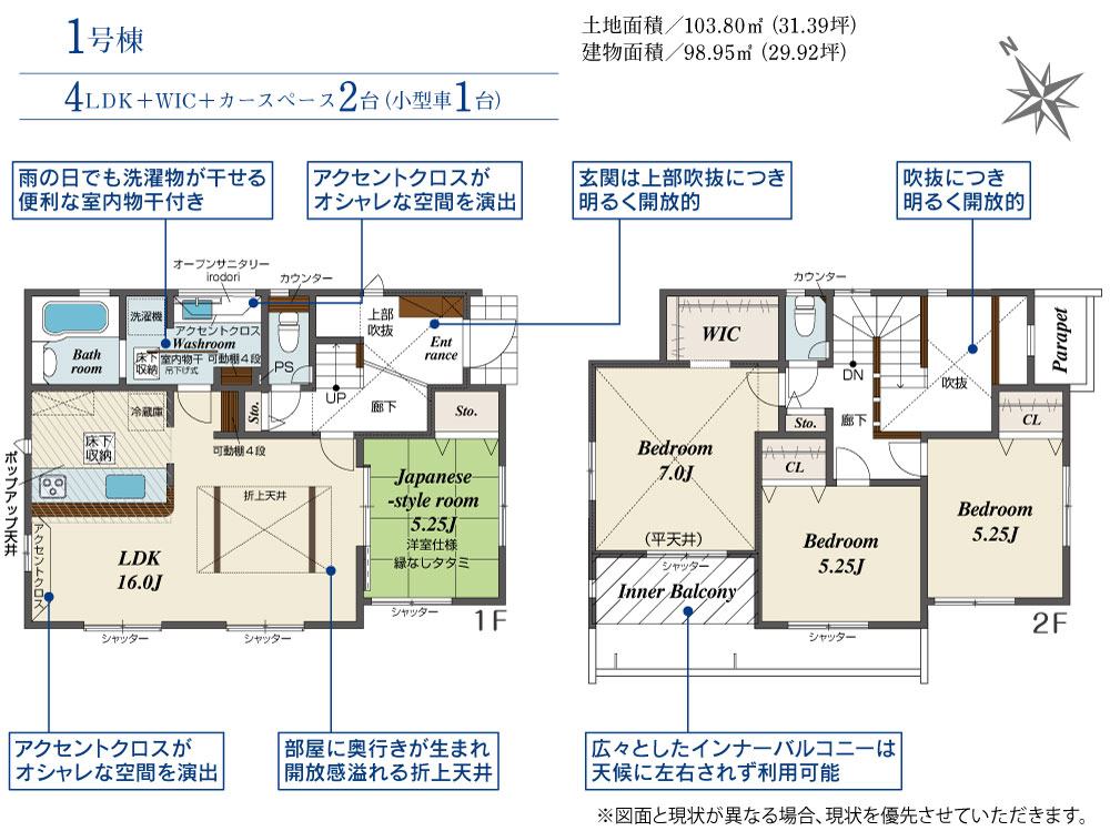 | 建物面積 | 98.95m2(約29.93坪)~101.82m2(約30.80坪) | 土地面積 | 103.80m2(約31.39坪)~116.93m2(約35.37坪) |