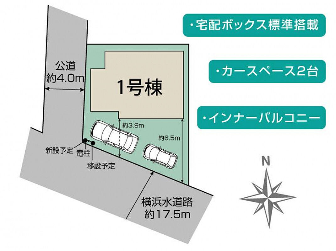 | 駐車場 | 2台 | 道路の幅員 | 西側4.0m公道 |