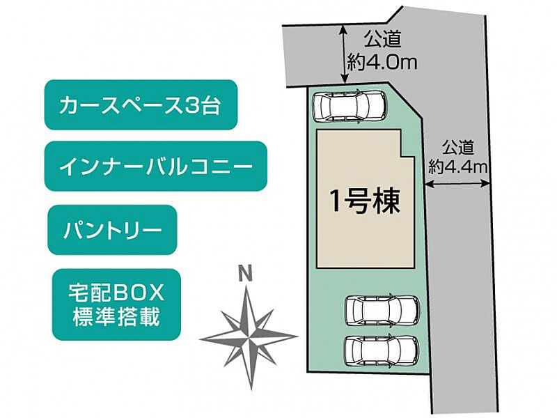 | 駐車場 | 3台 | 道路の幅員 | 東4.4m公道、北4.0m公道 |