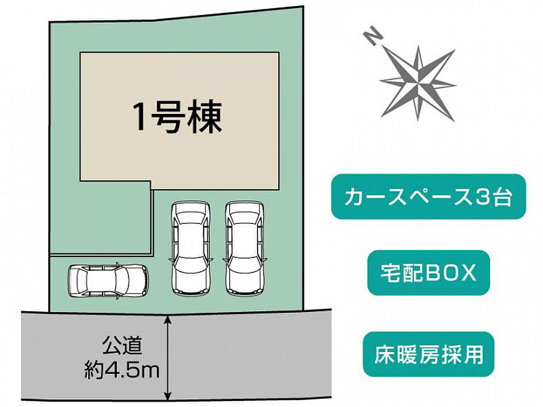 | 駐車場 | 3台 | 道路の幅員 | 南4.5m公道 |
