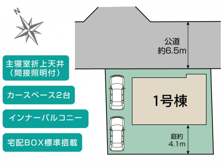 | 駐車場 | 2台 | 道路の幅員 | 北6.5m公道 |