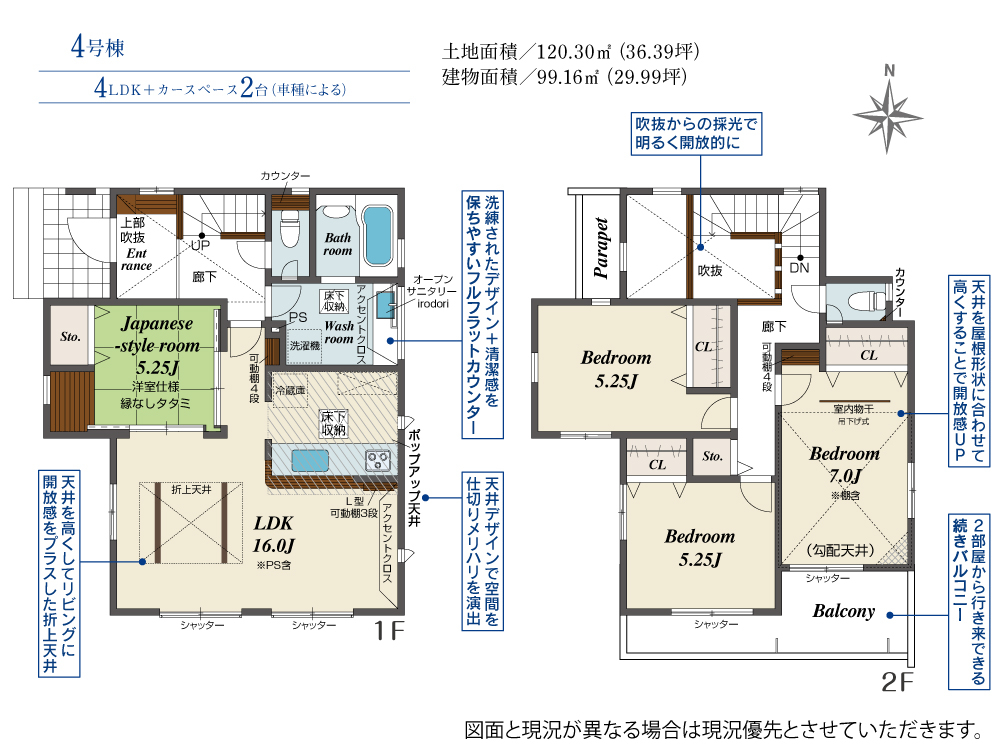 4号棟 間取り 4LDK 価格 3480万円 建物面積 99.16m2 土地面積 120.30m2 -