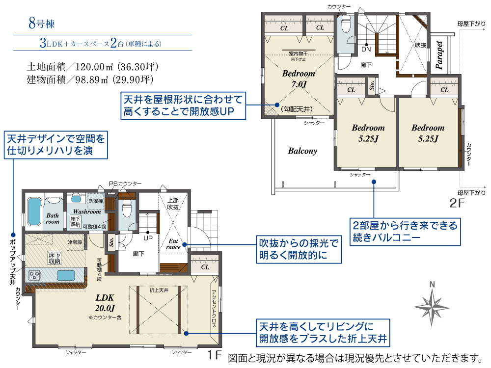 8号棟 間取り 3LDK 価格 3380万円 建物面積 98.89m2 土地面積 120.00m2 -