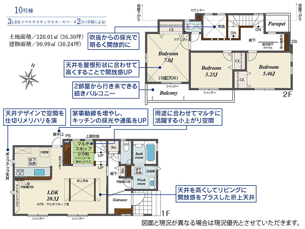 10号棟 間取り 3LDK 価格 3380万円 建物面積 99.99m2 土地面積 120.01m2