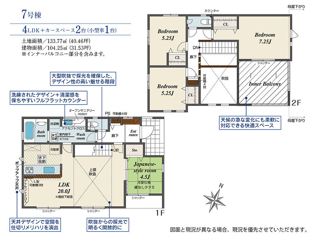 | 建物面積 | 98.54m2(約29.80坪)~104.25m2(約31.53坪) | 土地面積 | 133.66m2(約40.43坪)~139.81m2(約42.29坪) |