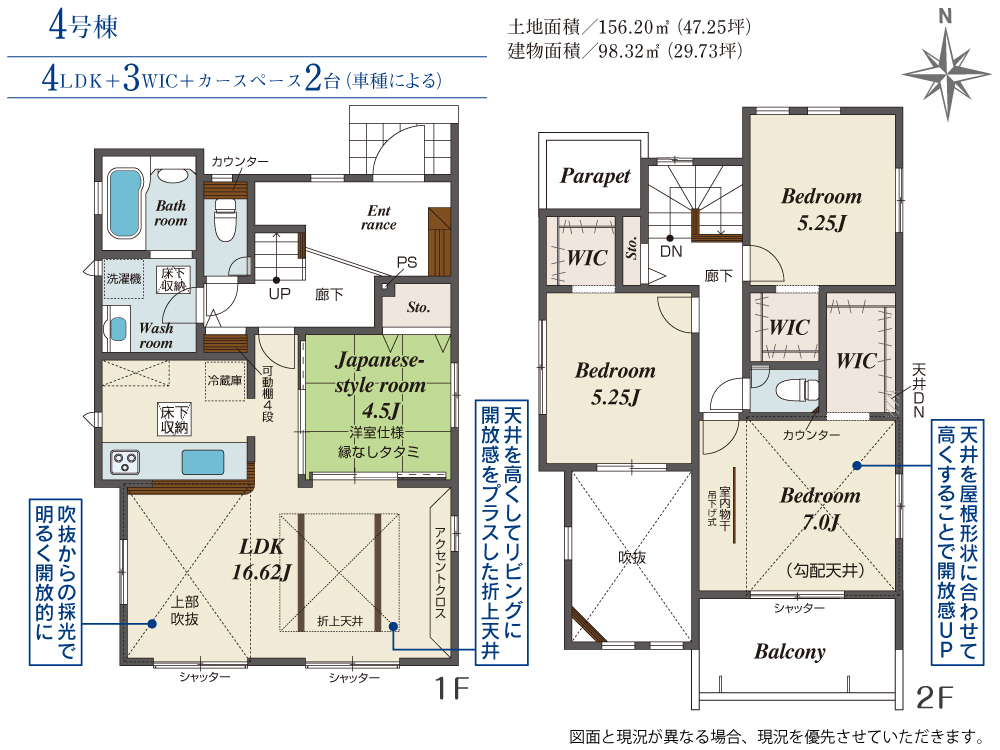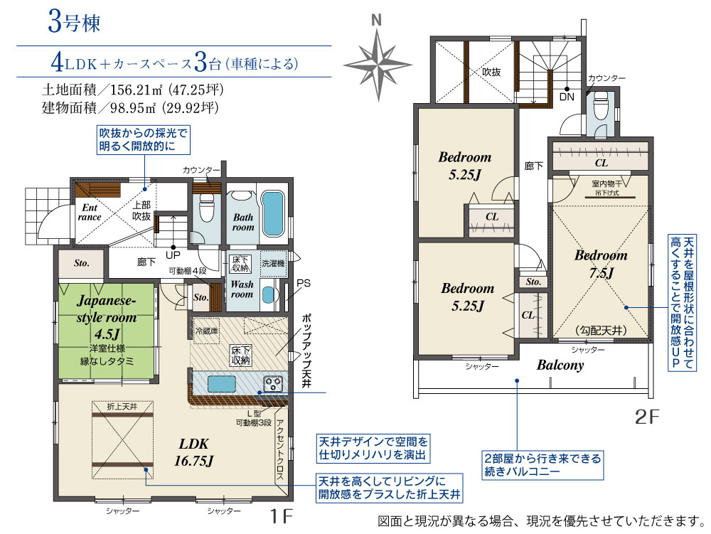 | 建物面積 | 98.32m2(約29.74坪)~98.95m2(約29.93坪) | 土地面積 | 156.20m2(約47.25坪)~156.21m2(約47.25坪) |