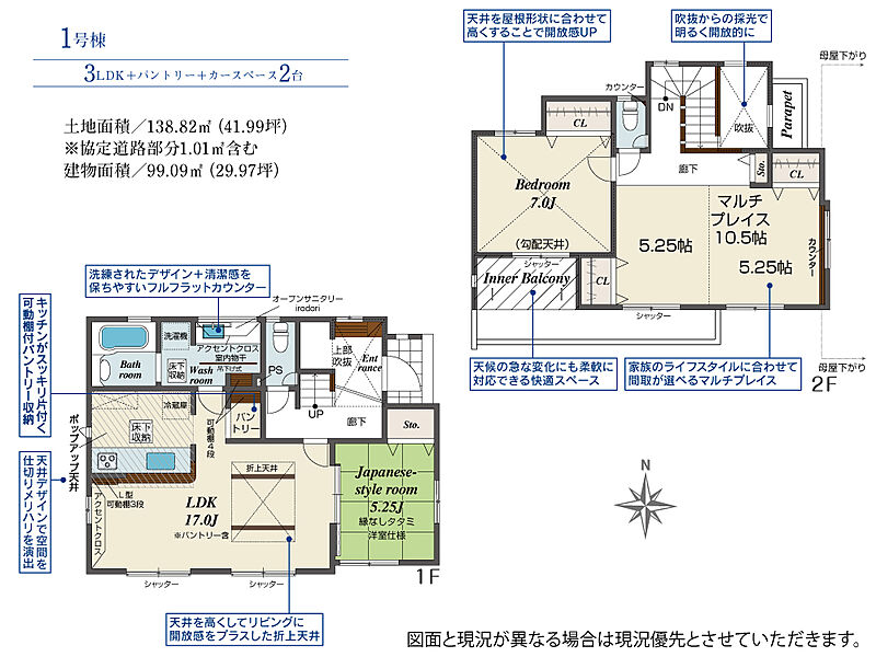 | 建物面積 | 98.13m2(約29.68坪)~99.10m2(約29.97坪) | 土地面積 | 137.71m2(約41.65坪)~168.98m2(約51.11坪) |