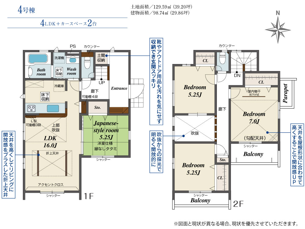 4号棟 間取り 4LDK 価格 3780万円 建物面積 98.74m2 土地面積 129.59m2 -