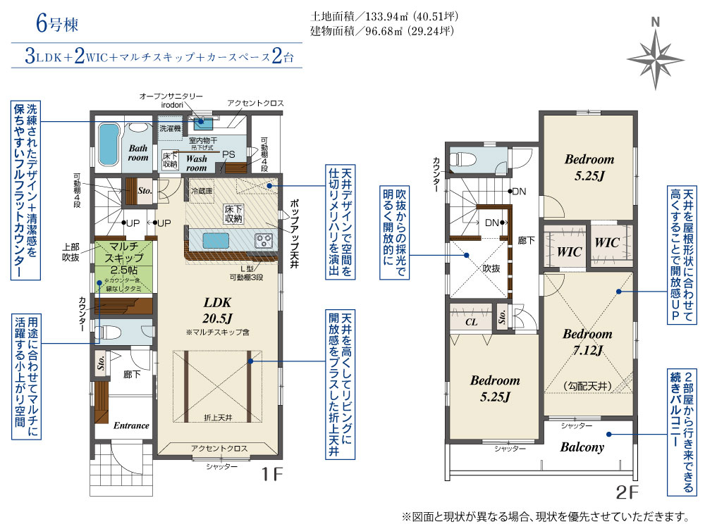 6号棟 間取り 3LDK 価格 3580万円 建物面積 96.68m2 土地面積 133.94m2