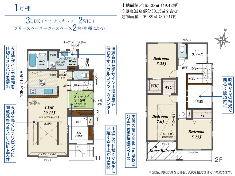 1号棟 / 3LDK / 99.89m2 / 163.38m2 / 4980万円
