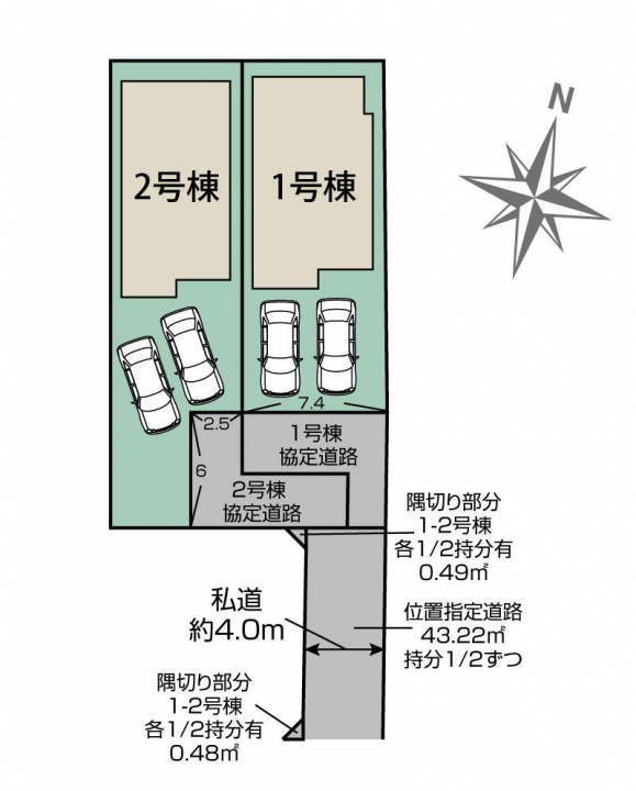 駐車場 2台 道路の幅員 南4.0m私道