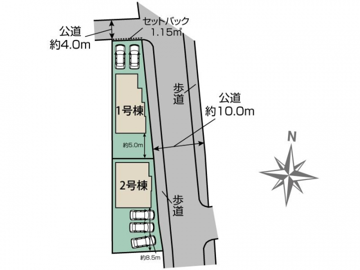 | 駐車場 | 3台 | 道路の幅員 | 北4.0m公道、東10.0m公道 |