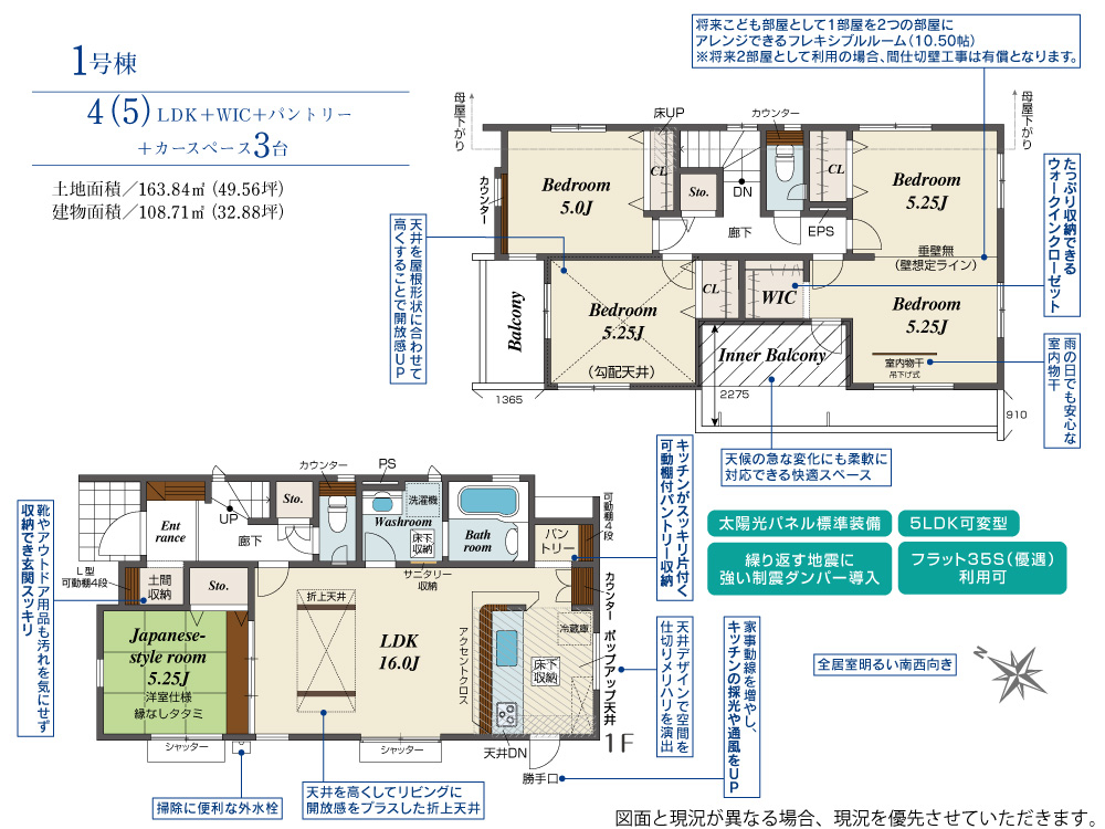 | 建物面積 | 108.71m2(約32.88坪) | 土地面積 | 163.84m2(約49.56坪) |