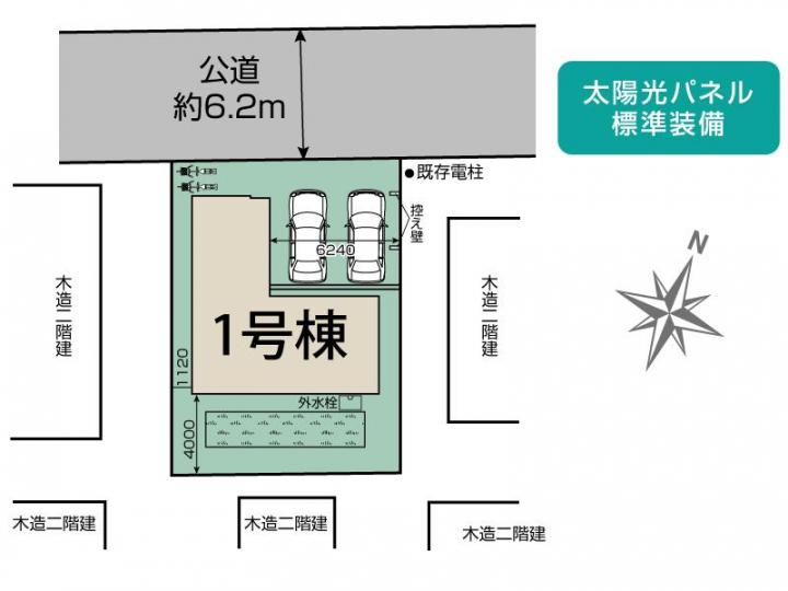 | 駐車場 | 2台 | 道路の幅員 | 北西6.2m公道 |