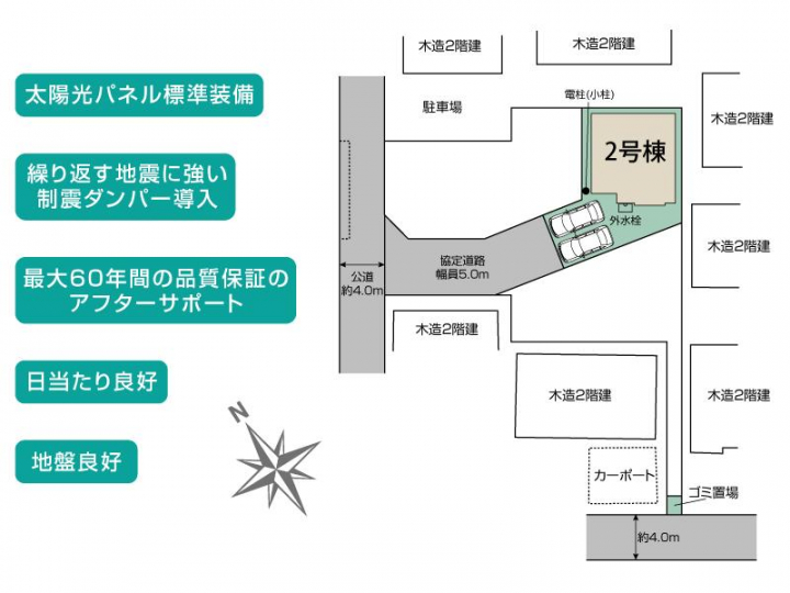 | 駐車場 | 2台 | 道路の幅員 | 北西4.0m公道 |