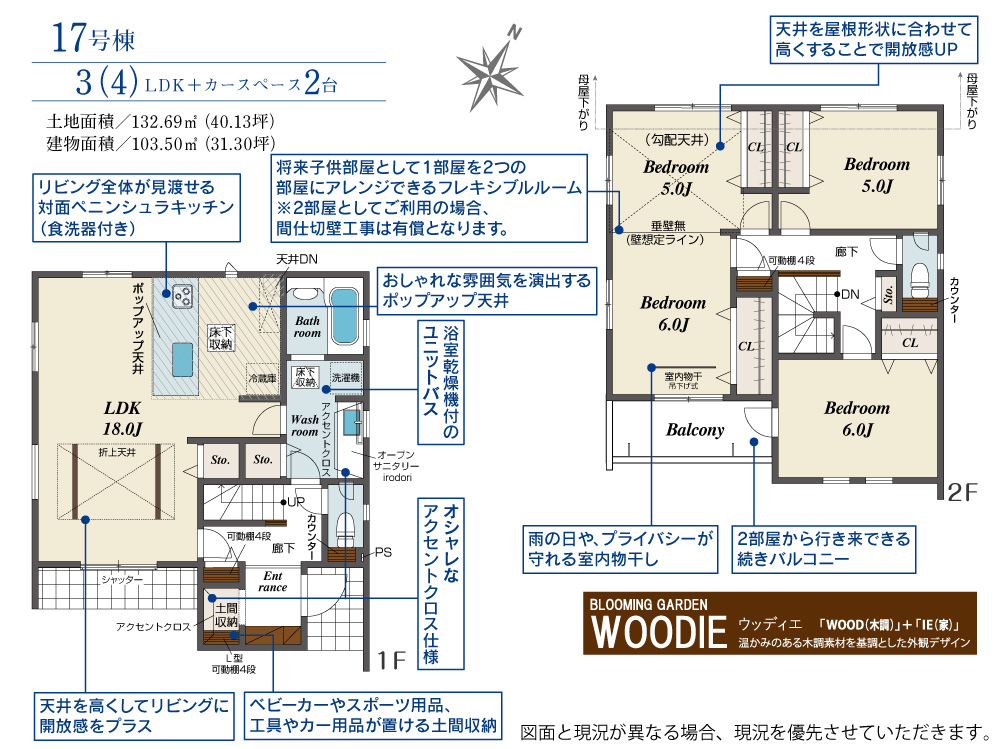 17号棟 間取り 3LDK 価格 4480万円 建物面積 103.50m2 土地面積 132.69m2 -