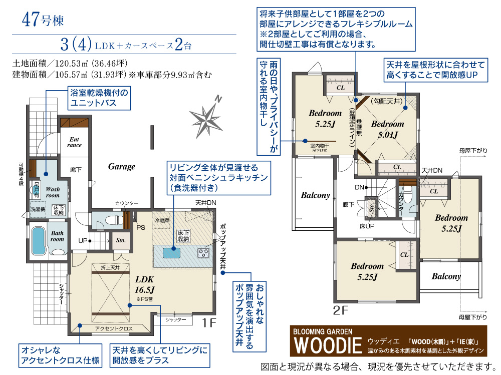 | 建物面積 | 98.48m2(約29.79坪)~105.57m2(約31.93坪) | 土地面積 | 120.53m2(約36.46坪)~166.05m2(約50.23坪) |