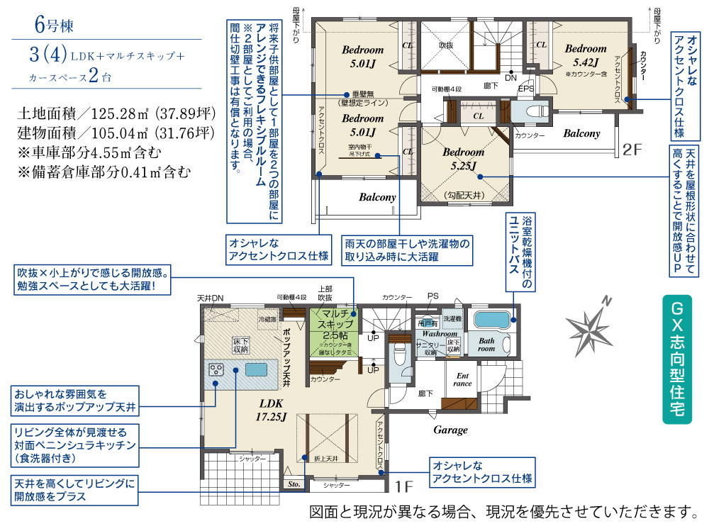 6号棟 間取り 3LDK 価格 4190万円 建物面積 105.04m2 土地面積 125.28m2 -