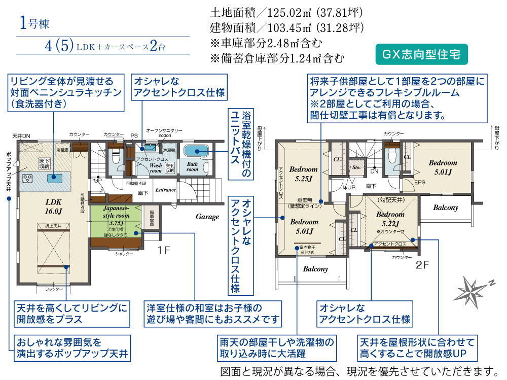 1号棟 間取り 4LDK 価格 4290万円 建物面積 103.45m2 土地面積 125.02m2 -