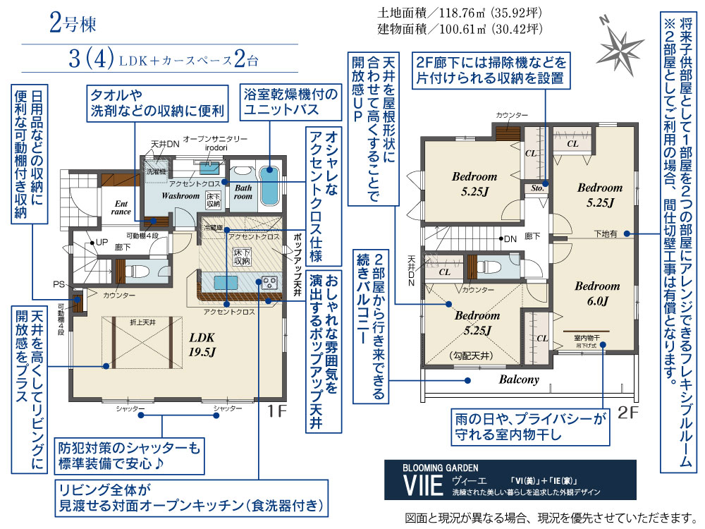 2号棟 間取り 3LDK 価格 4190万円 建物面積 100.61m2 土地面積 118.76m2 -
