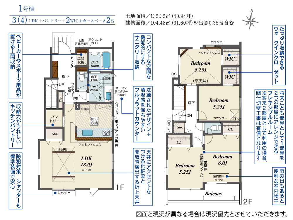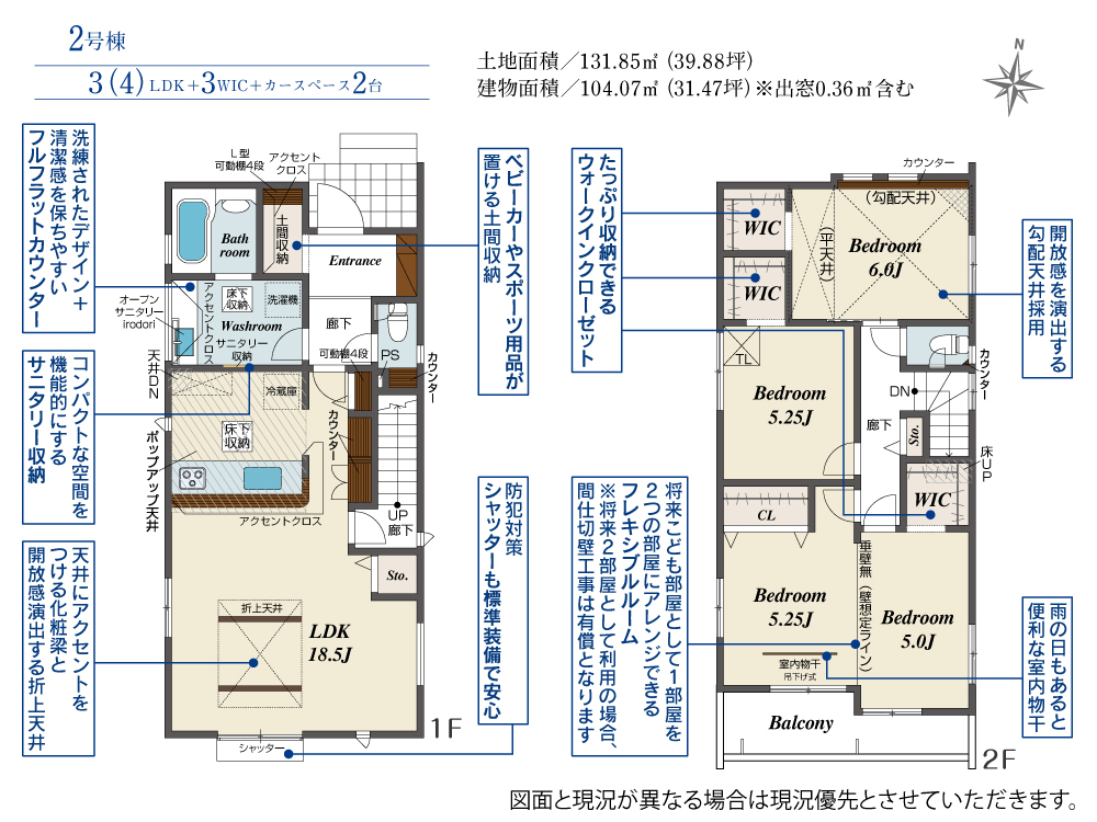 | 建物面積 | 104.07m2(約31.48坪)~104.48m2(約31.60坪) | 土地面積 | 131.85m2(約39.88坪)~135.35m2(約40.94坪) |