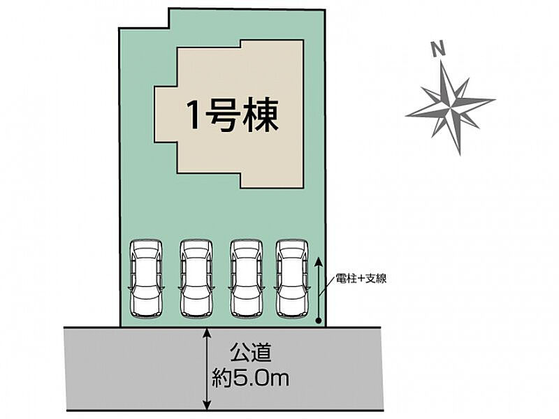 | 駐車場 | 4台 | 道路の幅員 | 南5.0m公道 |